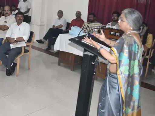 प्रयागराज:।वार्ताहर:। नाद-ब्रह्म-महोत्सवे शिल्पमेलायां मनोजगुप्तस्य भजनानि गीतानि च श्रोतान् मन्त्रमुग्धान् अकुर्वन्।उत्तर-मध्य-क्षेत्र-सांस्कृतिक-केन्द्रेण आयोजितस्य लोकसङ्गीत-शास्त्रीयसङ्गीत-जनश्रद्धाणां जीवन्त-सङ्गमस्य ङङ’चलो मन गंगा यमुना तीर’ङङ इति ‘नाद-ब्रह्म-महोत्सवस्य’ पञ्चमे दिवसे प्रसिद्धः भजन-गजल-गायकः मनोजगुप्तः स्वकीयाभिः प्रस्तुतिभिः श्रोत?न् मन्त्रमुग्धान् अकरोत्।…