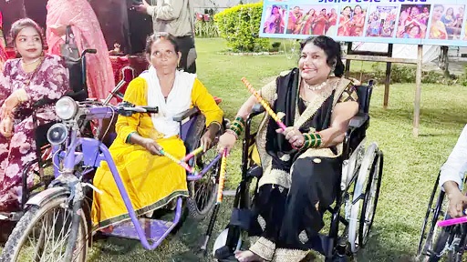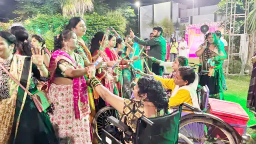 आचार्य शम्भुनाथ: त्रिपाठी/प्रयागराज। रविवासरे सायं प्रयागराजनगरे विकलाङ्गानाम् कृते दण्डिया-उत्सवः आयोजितः। आयोजने उपस्थिताः सर्वे अपाङ्गजनाः महता उत्साहेन दण्डियां (यष्टिकेभ्य:) क्रीडन्ति स्म, हृदयस्पर्शी नृत्यं च कृतवन्तः। कार्यक्रमे सर्वे मिलित्वा डीजे इत्यस्य ताडनेन दण्डिया वादयन्ति स्म, गीतानां धुनेषु नृत्यं च कुर्वन्ति स्म। अस्मिन् कार्यक्रमे न्यायाधीशः विजयलक्ष्मी मुख्यातिथिः आसीत्। न्यायाधीशः विजयलक्ष्मी स्वसम्बोधने अवदत् यत्, ‘विकलाङ्गाः न केवलं प्रेरणा, अपितु समाजस्य कृते आत्म विश्वासस्य संस्कृतिस्य च जीवन्तं प्रतीकम् अपि सन्ति। तेषां कौशलात्, आत्मविश्वा सात्, सांस्कृतिक शत्तäया च अस्माभिः शिक्षितव्यम्। समाजः तदा एव समृद्धः भवितुम् अर्हति यदा सः स्वसमाजस्य प्रत्येकं वर्गाय सम्मानं अवसरं च प्रदाति। एतादृशाः सांस्कृतिकाः कार्यक्रमाः न केवलं मनोरञ्जनस्य साधनं, अपितु एकतायाः समानतायाः च प्रतीकम् अपि भवन्ति।’ अस्मिन् कार्यक्रमे विकलाङ्ग जनानाम् उपनिदेशकः अभय कुमार श्रीवास्तवः, समाज सेवी जमुनोत्री गुप्तः, डॉ. स्वीटी मौर्यः, कान्ता चोपड़ा, प्रेमलता शुक्लः, निशा गुप्ता, सीमा, पद्मा, अनुराधा च विशेषातिथिः आसन्। ते सर्वे अस्य आयोजनस्य प्रशंसाम् अकरोत् विकलाङ्ग प्रतिभागिनांप्रदर्शनं सर्वात्मना। विकलाङ्ग प्रतिभागिभिः प्रस्तुताःदण्डिया नृत्यं, गीतं, संगीतं, अन्ये सांस्कृतिक कार्यक्रमाः प्रेक्षकान् मंत्रमुग्धं कृतवन्तः।