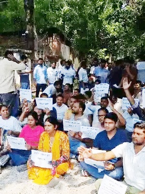 प्रयागराजे यूपी शिक्षासेवाचयनआयोगस्य बहिः विरोधः-अभ्यर्थिनः सहायकप्रोफेसरपरीक्षां तत्क्षणं निरस्तं कर्तुं आग्रहं कृतवन्तः
