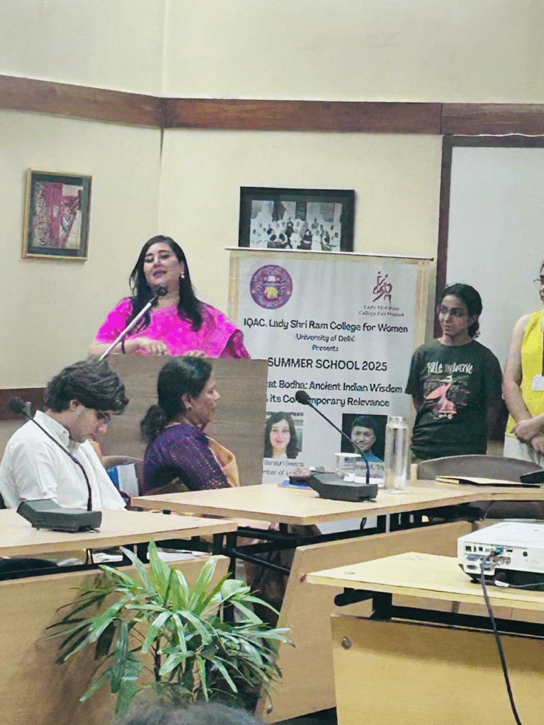 भूमिदत्त मिश्र/नवदेहली। दिल्ली विश्वविद्यालयस्य लेडी श्री राम महाविद्यालयस्य आन्तरिकगुणवत्ता आश्वासन प्रकोष्ठेन तथा दिल्ली विश्वविद्यालयस्य लेडी श्री राम महाविद्यालयस्य संस्कृत विभागेन दिल्ली संस्कृत अकादमी सहकारेण ‘भारत बोधः प्राचीन भारतीय ज्ञानं तस्य समकालीन सान्दर्भिकता च’ इति विषये द्विसप्ताहात्मकः ऑनलाइन प्रमाण पत्र पाठ्यक्रमः ९ जूनतः २३ जून २०२५ पर्यन्तं सफल तया सम्पादितः। एलएसआर समर स्कूल-२०२५ इत्यस्य ‘धरोहरः भारतीय संस्कृतेः झलकाः’ इति व्यापक विषयेण अयं कार्यक्रमः आयोजितः आसीत्। पाठ्य क्रमस्य उद्घाटन सत्रं ९ जून दिनाङ्के महाविद्यालय परिसरस्य भव्यरूपेण आयोजितम्, यस्मिन् मुख्यातिथि रूपेण माननीय सांसदः सुश्री बंसुरी स्वराजः, विशेषा तिथि रूपेण च प्रो. कार्यक्रमस्य अध्यक्षता प्रो.कनिका के.आहूजा (कार्यकारी प्राचार्य, एल.एस.आर. अकुर्वन्। २३ जून २०२५ दिनाङ्के आयोजिते समापनसत्रे मुख्यातिथि रूपेण प्रो.भारतेन्दु पाण्डेयः (अध्यक्षः, संस्कृत विभागः, दिल्ली विश्वविद्यालयः) तथा विशेषा तिथि रूपेणडॉ. अरुण कुमार झा (सचिवः,दिल्ली संस्कृताकादमी) उपस्थितः आसीत्। अधिवेशनस्य पुनः अध्यक्षता प्रो. कनिका के.समापन सत्रे प्रतिभागिनां अनुभवाः साझाः कृताः, प्रमाण पत्र वितरणस्य औपचारिक घोषणा च कृता।