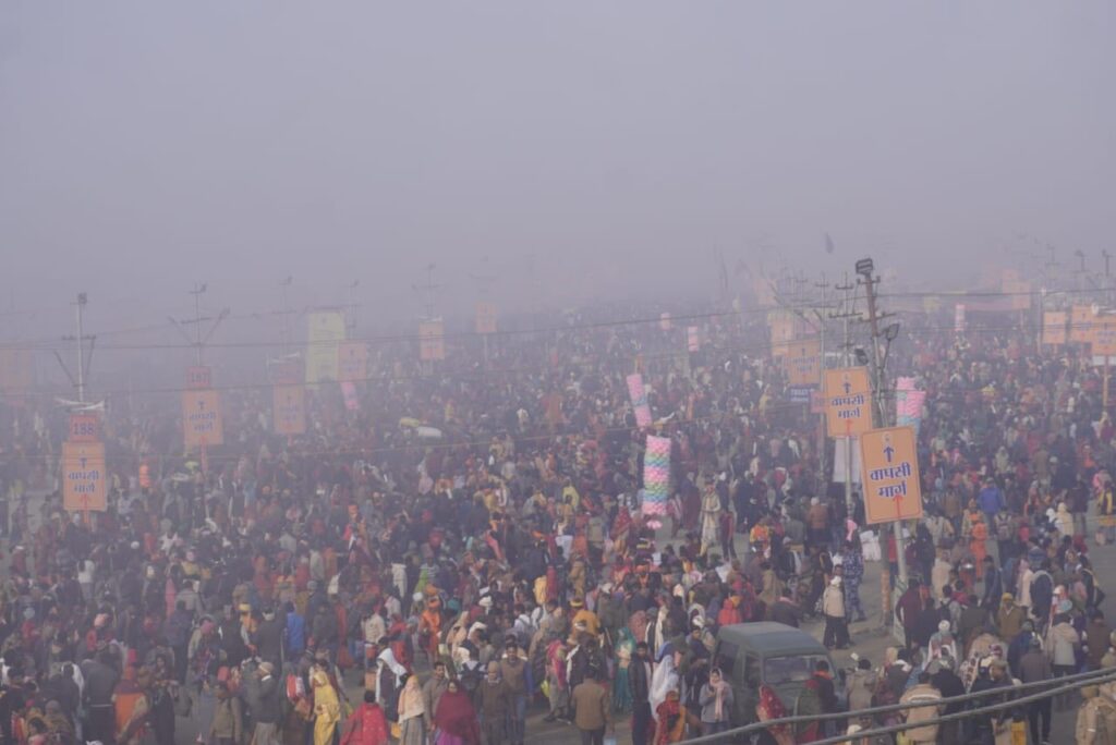मौनीअमावस्यायां संगमे श्रद्धालुषु पुष्पवृष्टिः अभवत्-आस्थापूर्णं स्नानं कर्तुं ४.५२ कोटि जनाः संगमे अवगाहनं कृतवन्तः